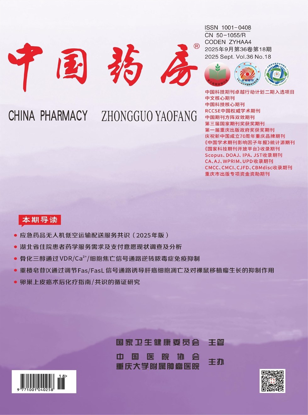 《中国药房》杂志是国家卫生健康委员会主管、中国医院协会、重庆大学附属肿瘤医院主办的国家级、国内外公开发行的药学学术类刊物。