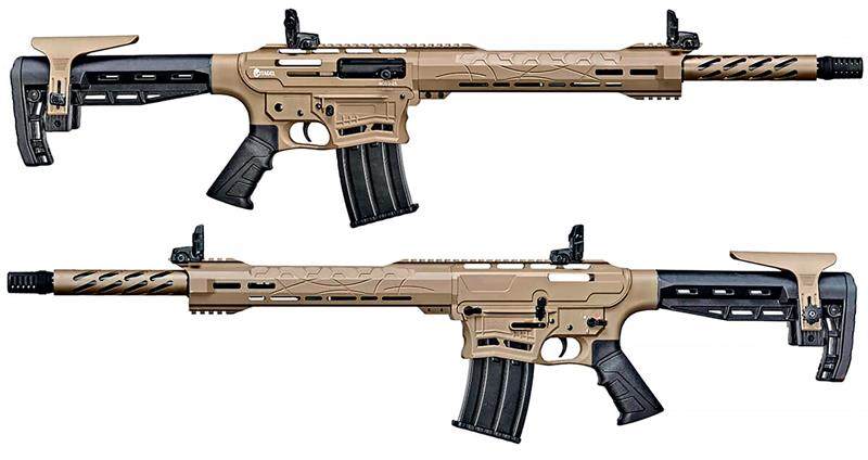 Citadel BOSS-25霰弹枪左、右视图,其整体采用AR系外观 AR霰弹枪发展缓慢 在北美民间枪械市场中,雷明顿霰弹枪曾长期占据畅销榜首。在美俄交好时期,俄罗斯制造的 AK霰弹枪涌入美国,迅速在枪械爱好者群体中掀起热潮,引发了弹匣式与弹仓式霰弹枪的竞争。AK霰弹枪凭借弹匣供弹的方便性与可靠性受到民众追捧,美国本土枪械厂家或商贩看到AK霰弹枪的良好表现,认为研制同属战术范畴的 AR 霰弹枪