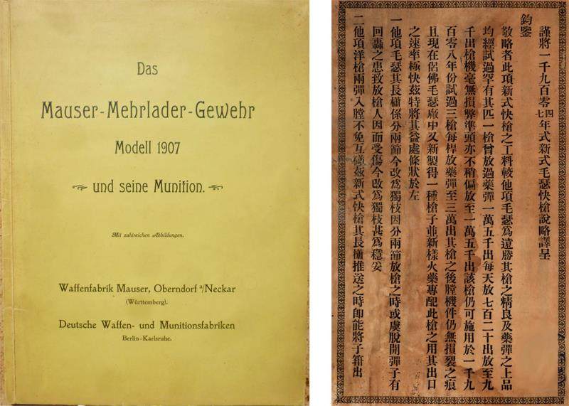 陆军部规定的新式步枪口径和样式 光绪二十九年二月十九日(1903年3月17日),张之洞提请朝廷制定新式步枪口径,经过3年多的讨论,光绪三十二年五月初七(1906年6月28日)清廷颁行由练兵处制定的《陆军枪炮口径等项程式》,规定“快枪枪支口径拟用六密里八,枪筒长一百十五倍口径,子弹出枪口速率需达六百五十密达以上。用无烟药,其烧化之速,以子弹将出枪口药始化尽为度”。 《程式》中并未规定新式步枪采用
