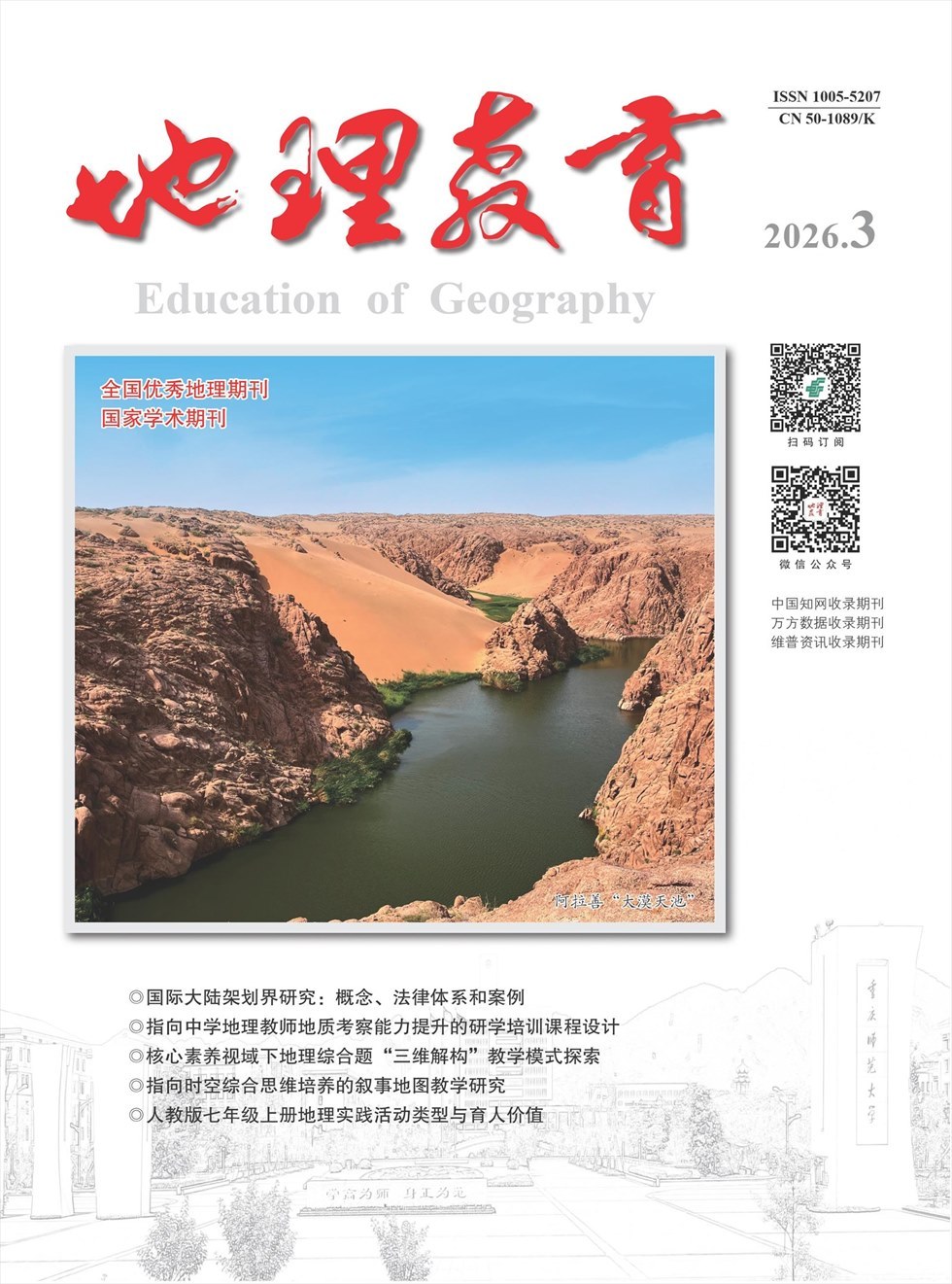 本刊遵循地理教育及期刊发展规律,本着“更好地服务于中学地理教学”的办刊宗旨,依手托重庆师范大学地理系雄厚的地理教育人才,并得到了编委会各专家的悉心指导。《地理教育》正蓬勃发展,逐步走向成熟,是广大地理教育工作者的良师益友。