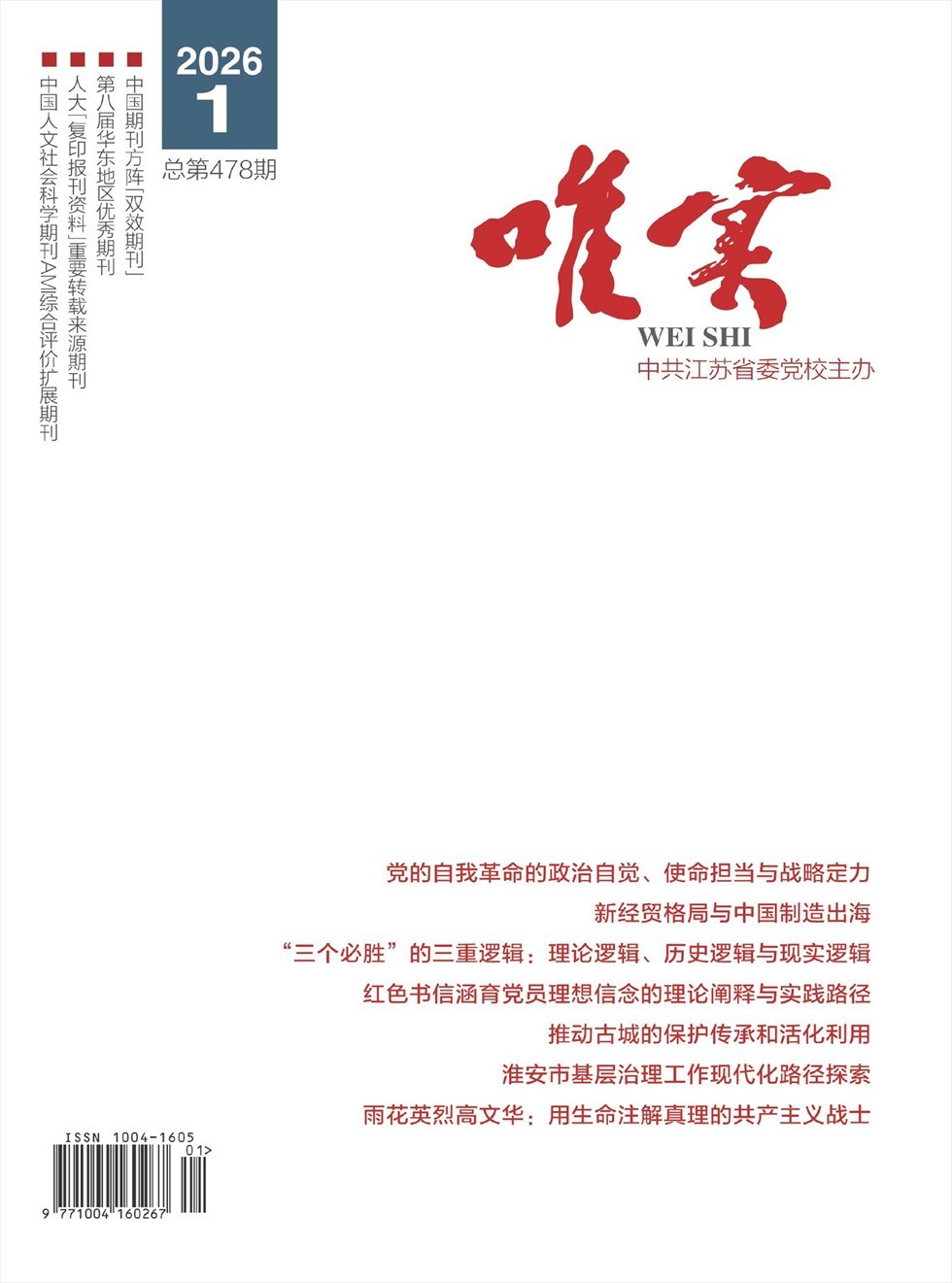 《唯实》杂志是中共江苏省委党校主办的综合性社会科学期刊,是中国期刊方阵“双效期刊”、第三届华东地区“优秀期刊”、江苏省期刊方阵“双效期刊”,已有25年办刊历史。