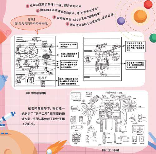 嗨!大家好,我们是“猎星号”小行星探测小组。通过研究,我们发现探测小行星就像去一个超级奇怪的星球冒险,遇到的麻烦可不少!微重力条件下,探测器一不小心就会飘走,或者被凹凸不平的表面“绊倒”,还需应对极端温度变化等严峻挑战。针对这些挑战,我们设计了“天问二号”小行星探测器。我们的研究目标包括: 具体来说,我们设计的“天问二号”探测器的功能分区主要分为三部分。 探测器的“火眼金睛和巧手”(探测与