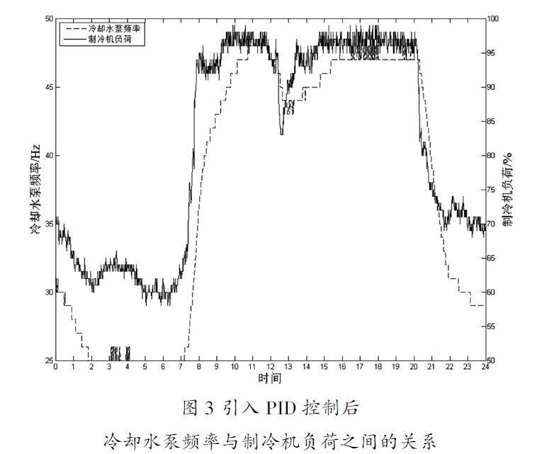 摘 要:本文研究了基于变频调速技术的冷却水循环系统能效优化。针对某工厂冷却水泵长期以工频运行导致的能源浪费问题,本研究采用变频技术对冷却水泵进行改造,并通过PID算法控制变频器的频率值,实现了冷却水泵根据制冷机负荷自动调节冷却水供应量的功能。通过对水泵运行数据进行建模,建立了水泵功率与运行频率之间的非线性关系模型。引入PID控制后,冷却水泵频率能够随着制冷机负荷变化而变化,节能效果显著。通过对比不