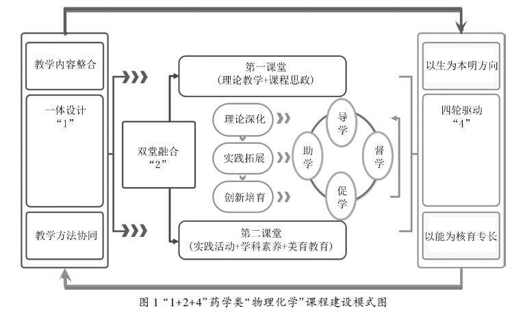 摘 要:物理化学教学团队立足学校“应用型、特色化”办学定位,围绕药学类专业需求,以“一体设计”为中心,有效整合课程体系,构建以“课堂教学”为主体的第一课堂和以“实践活动+学科素养+美育教育”为依托的第二课堂的“双堂融通”模式,通过“导学强化基础,督学动态跟踪,促学激发潜能,助学精准帮扶”的“四轮驱动”模式开展教学。通过历年实践探索,逐步构建“1+2+4”应用型药学类专业“物理化学”课程建设模式,显