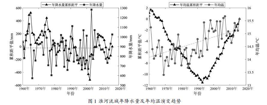 摘 要:全球气候变化背景下,淮河流域降水与气温的时空演变对区域水资源管理和灾害防控具有重要意义。本文基于1960—2016年淮河流域28个气象站点的观测数据,结合北极涛动(AO)、厄尔尼诺—南方涛动(ENSO)、太平洋十年涛动(PDO)等大气环流因子,采用累积距平法、优化的MannKendall检验及交叉小波分析,揭示了流域降水气温的时空变化特征及其影响因素。结果表明:1960—2016年,淮河流