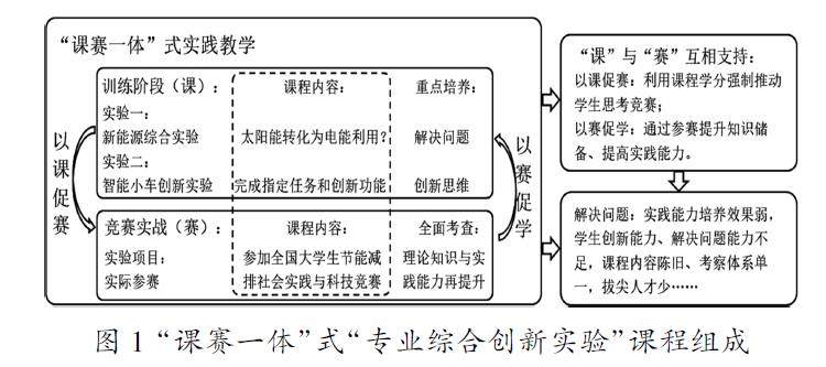 摘 要:为提高实验教学的人才培养效果,利用“课赛一体”式课程结构,将实验教学和科创赛事有机结合,让大学生在科技创新竞赛中完成实验教学内容。以“专业综合创新实验”课程为例,从课程结构设计、课程内容选择、课程评价体系等方面进行了改革与实践。教师通过设计实践教学和科创竞赛相结合的课程结构,以学生为主的课堂氛围,设置多环节考核形式,以及多角度的评分标准,大幅提升了大学生综合实践能力,培养了大学生的创新能力