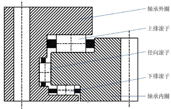 摘要:【目的】盾构机主轴承承受复杂集中载荷(含巨大轴向力与倾覆力矩)。为提升转盘轴承有限元仿真效率并降低其最大接触载荷,提出一种轴承内圈滚道非平面结构设计方法。【方法】以三排圆柱滚子轴承为研究对象,采用非线性弹簧等效圆柱滚子的建模方法开展有限元分析,获取其在典型工况联合载荷作用下的内部接触载荷分布及整体变形特性。【结果】结果表明,该等效建模方法可有效缩小计算规模、缩短计算时间;上排与下排滚子接触载荷呈近似对称分布;非平面滚道轴承较圆形滚道轴承的最大接触载荷降低约 9% ,且滚子载荷分布更均匀、数值均有下降,对延长轴承使用寿命具有参考价值。