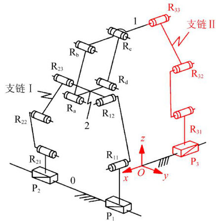摘要:【目的】优良的运动解耦特性能够显著简化机构的后期运动规划、控制、误差及动力学分析,但目前针对具备该特性机构的研究仍较为缺乏。为此,根据基于方位特征方程的并联机构拓扑设计理论和方法,设计了一种运动解耦性优良且零耦合度的三平移并联机构。【方法】首先,对所提机构进行了拓扑分析,求得其方位特征(Position and Orientation Characteristic,POC)集、自由度、耦合度及拓扑解析表达式;其次,使用基于拓扑特征的机构运动学建模与分析方法,求得所提机构的符号式位置正、反解,并通过正解求得机构的工作空间,通过导出基于位置逆解方程的雅可比矩阵求得机构奇异性;再次,基于虚功原理的序单开链法,对所提机构的动力学性能进行分析,求解了所提机构所需的驱动力,并采用差分进化算法对机构几何尺寸参数进行了优化设计;最后,给出所提机构的一种应用场景的概念设计。【结果】结果表明,经差分进化算法优化后的机构的工作空间明显增大;所提机构具有零耦合度且更易求出符号式正、反解,运动解耦大幅简化运动规划。