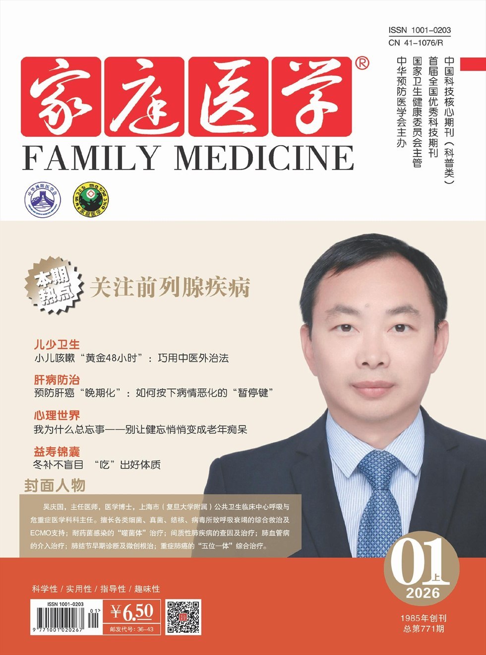 家庭医学杂志是由国家卫生部主管、中华预防医学会主办的国家级医学科普刊物,国内外公开发行。本刊集权威性、科学性、实用性、知识性、趣味性于一体,图文并茂,知识丰富,是您家庭的健康保证,生活保健的向导,医疗咨询的指南,心理、生理健康的源泉。