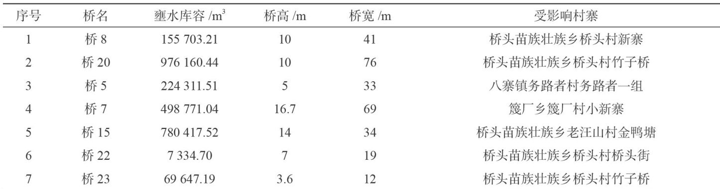摘要:为增强云南省大梁子河流域的防洪减灾能力,对该流域山洪灾害风险隐患进行识别与影响分析。基于大梁子河流域的地形、水系、土壤和植被等关键空间数据,运用GIS技术和水文模型,进行壅水、溃决、漫流影响分析,计算安全水位和流量阈值,并对11个保护对象进行了危险区等级划分和预警指标分析。结果表明:桥23发生溃决时溃口最大瞬时流量为44.22m3/s ,下游保护对象桥头村控制断面最高水位为 896.129m 。下三家漫流情景下,当设计洪水流量为 57.1m3/s 时,淹没水位为 1700m 。11处保护对象中,9处极高危险区1h立即转移雨量为 36~83mm ,2处高危险区1h立即转移雨量为 87~90mmo 研究成果为大梁子河流域提供了风险评估与管理策略,也为类似小流域的风险管理提供了参考。