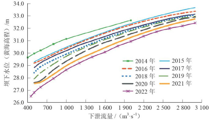 摘要:汉江兴隆枢纽运行初期,鱼道功能发挥正常,但近年来,受下游河床不断下切影响,鱼道进口水深小于设计值,进口流速达 1.73m/s ,超过一般鱼类克流能力;枯水期鱼道进口水位低于其底板顶部高程,形成跌坎,影响鱼类繁殖季节正常上溯。通过对鱼道问题进行深入分析,提出了新增鱼道延长段和低进鱼口、优化鱼道隔板结构、设置出鱼口束流墩等系统化改造方案,并增设水声学AI监测系统,以科学评估鱼道改造效果。监测结果表明,鱼道改造实施后,过鱼种类由8种上升到29种,鱼类密度由 0.02~1.27 尾 /m 提升至 0.165~5 尾 /m ,鱼道过鱼效果明显提升。