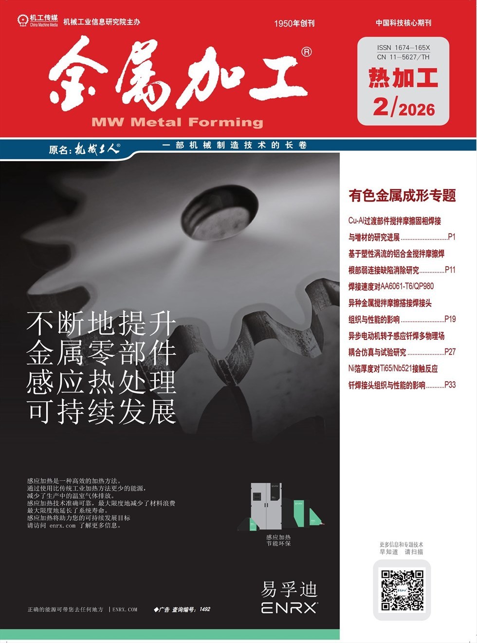 《金属加工》创办于1950年,始终服务于金属加工领域,作为我国金属加工技术发展历程的忠实记录者和传播者,为广大企业和读者提供了数量巨大、实用性强、具有很高参考价值的技术文章,深受广大企业及读者的喜爱,为推动我国金属加工技术与装备水平的提高做出了卓越的贡献。