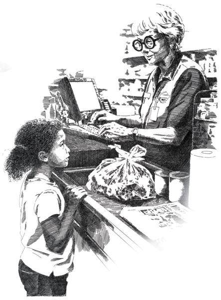 你去肉铺买肉,去药房买阿司匹林,去食品杂货店买食品,这都很容易。可那年夏天我待在纽约州沃里克镇奶奶家时,情况则不一样。她写了一张购物清单叫我到一家综合商店买东西。商店货架上的商品满满当当地胡乱堆在一起,我怎么才能找到要买的东西啊? 我走近柜台,柜台后面有一位我从来没有见过的女士。一副镶有假宝石边框的眼镜摇摇欲坠地架在她的鼻尖上,头上一堆灰白色的头发。 “打扰一下。”我说。女人抬起了头。