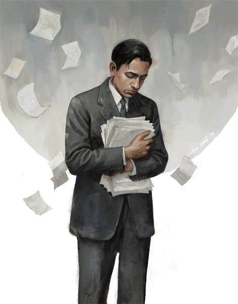 寻找他的家真是费了一番功夫。司机不得不屡次停车,向脏乱小巷里的面店和酒店打听。 “怎么样,问清楚了?”等司机回来后,我问道。 “问过了,好像再往前面些。不过,社长,您的挚友怎么会住在这样的地方?”司机答道,似乎无法理解。 我朋友大学毕业二十年,历尽千辛万苦,最终成了一家小公司的老板。这种身份的人住在市郊如此脏乱的地方,在司机眼里很不可思议。其实,我也不知道他为什么潦倒了。 “我也不太清